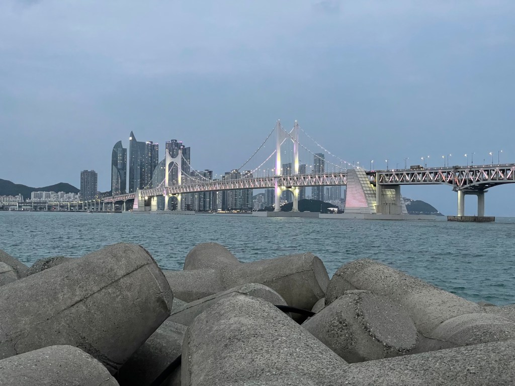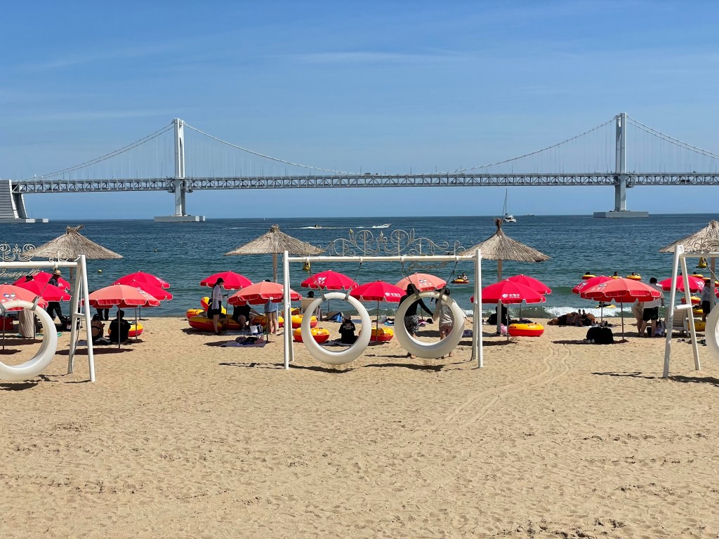หาดที่ยอดนิยมที่สุดในปูซาน และมีสัญลักษณ์เป็นวิวสะพานควังอันสีขาวทอดยาวข้ามมหาสมุทรด้วยความยาวถึง 7.4 กิโลเมตร หรือมีอีกชื่อว่า “Diamond Bridge” ซึ่งเชื่อมต่อเขตแฮอุนแดและเขตซูยอง