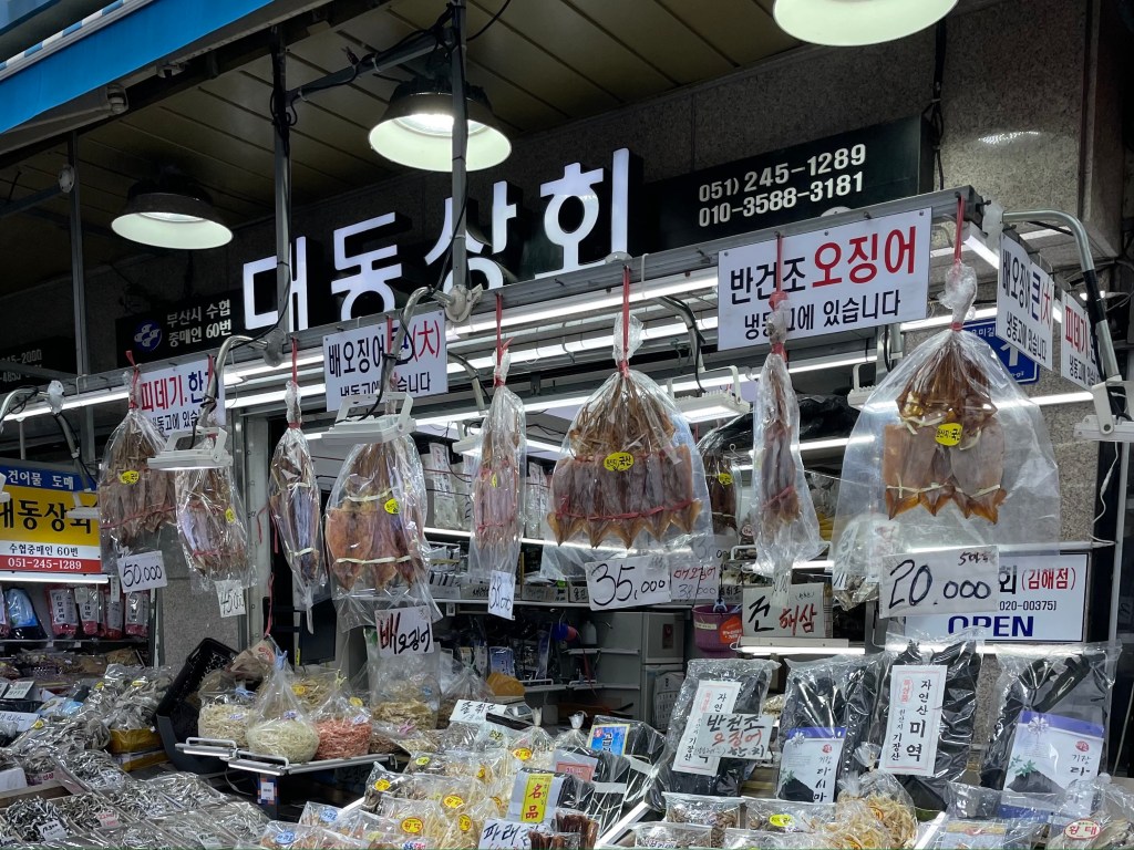 ตลาดดั้งเดิมของเมืองปูซานที่เปิดมาตั้งแต่ปี 1931 มาถึงวันนี้ก็เกือบจะ 100 ปี ถือว่ายาวนานมากๆ ตลาดแห่งนี้อยู่ติดกับท่าเรือประมงเลย มีอาหารทะเลแห้งขายทุกชนิด ที่เห็นเยอะก็จะเป็นปลากระตักแห้ง (ปลาแองโชวี่) ปลาหมึกแห้ง สาหร่ายทะเลแห้ง เป็นต้น เผื่อใครที่อยากซื้อของฝาก ก็แวะมาเดินเล่นที่ตลาดนี้ได้เลย หากเดินไปด้านหลังตลาดก็จะมีทางเดินยาวติดทะเล ชมวิวท่าเรือ และเมืองที่ตั้งอยู่ตามเนินเขา บรรยากาศดีมาก