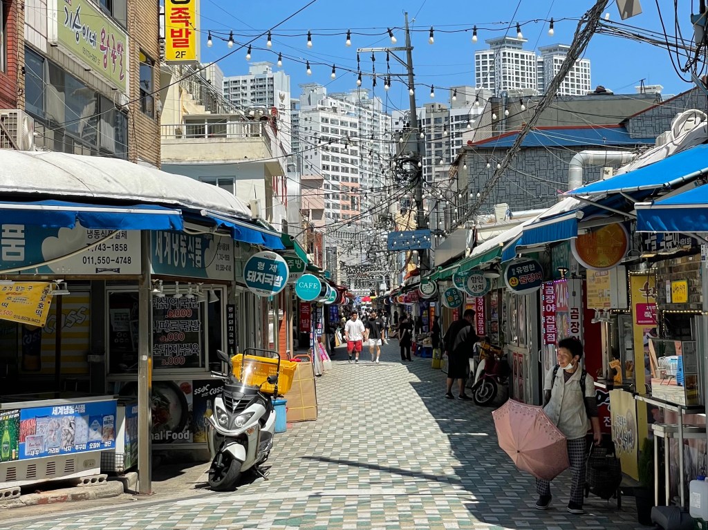 Landmark ยอดนิยมอีกแห่งของเมืองปูซาน ที่นี่ก็คือหาดแฮอุนแด เป็นหาดที่ล้อมรอบไปด้วยตึกสูงระฟ้า และมีถนนคนเดินที่เรียกว่า “จตุรัสแฮอุนแด” ที่เต็มไปด้วยร้านค้า ร้านอาหาร และคาเฟ่ บริเวณนี้มักจะเป็นลานกิจกรรมในเทศกาลต่างๆ แถมยังมีถนนตลาด Street Food ด้วย บรรยากาศคึกคักมากโดยเฉพาะในช่วงกลางคืน