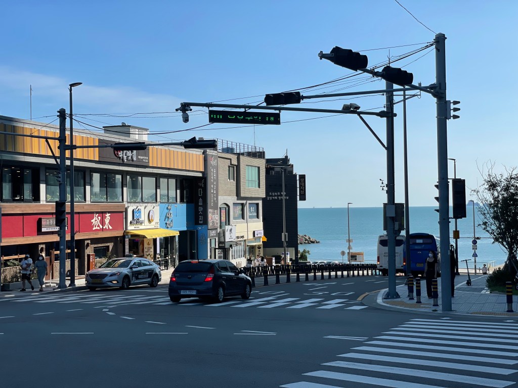 ถนนตามแนวชายหาดเต็มไปด้วยคาเฟ่วิวทะเล ร้านอาหาร และโรงแรมเยอะไปหมด ที่นี่บรรยากาศคึกคักทั้งกลางวันและกลางคืนเลย ในช่วงวันหยุดสุดสัปดาห์ ถนนหน้าหาดก็จะเต็มไปด้วยคนเดิน มีการเปิดหมวกร้องเพลง เล่นดนตรี และมีบาร์ให้นั่งดื่มด่ำกับบรรยากาศสะพานควังอันที่ประดับประดาไปด้วยไฟหลากหลายสี ฟีลดีมาก ใครมาปูซาน ยังไงก็ต้องมา Check-in ที่หาดนี้เลย