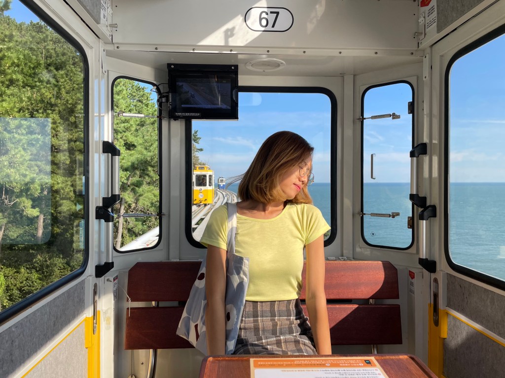 Highlight ที่สุดของทริปปูซานก็คือการนั่งรถไฟ Sky Capsule สุดน่ารัก ชมวิวทะเล จะบอกว่าบรรยากาศโรแมนติกมาก ความคุ้มค่าให้ 10 เต็ม 10 ไปเลย