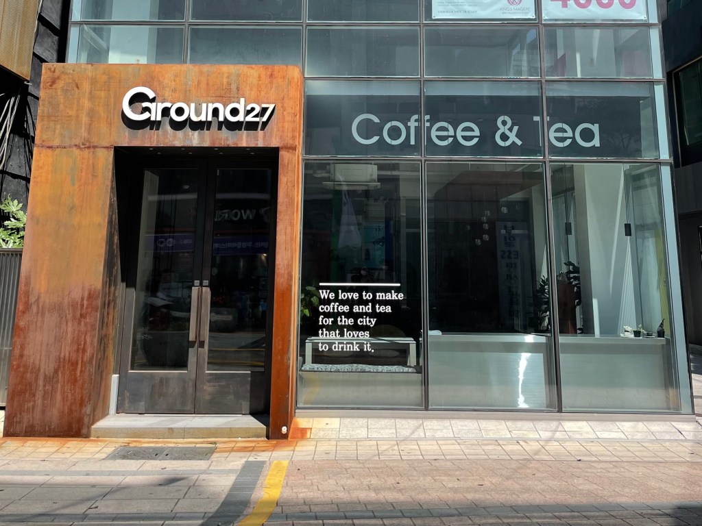 Ground27 เป็นค่าเฟ่ที่ตั้งอยู่บนถนนชอปปิ้ง Nampodong Steet เลย ใครไปเดินชอปปิ้งอย่าลืมแวะกินกาแฟที่นี่ ร้านมีที่นั่งเยอะ มีชั้นเดียวแต่กว้างมาก เหมาะกับการนั่งทำงานชิลๆ