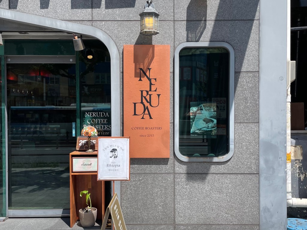 Neruda Coffee เป็นคาเฟ่ที่ตั้งอยู่ในย่านนัมโพ (Nampo) และเป็นคาเฟ่ Specialty มีเมล็ดกาแฟให้เลือกเยอะมาก หอมกลิ่นกาแฟตั้งแต่ประตูทางเข้ากันเลยทีเดียว คาเฟ่เป็นตึกเล็กๆ ตกแต่งแนวแอนทีค มีทั้งหมด 4 ชั้น ฟีลดี มุมถ่ายรูปเยอะมาก ใครชอบกาแฟดริปต้องมาลองที่นี่เลย
