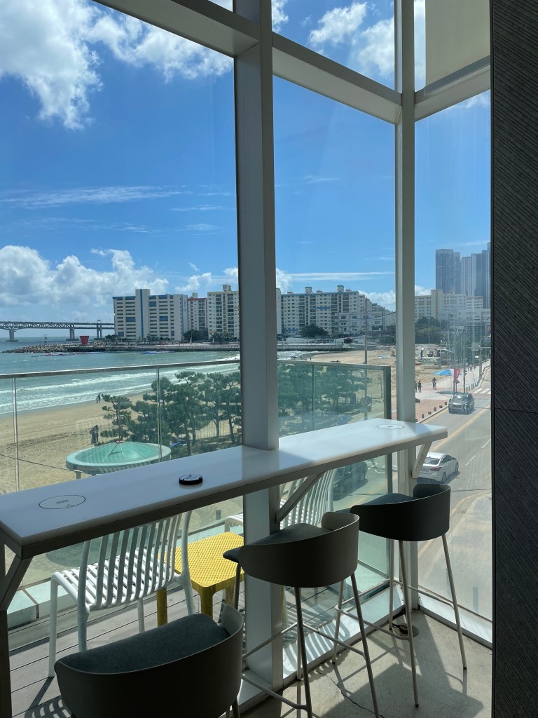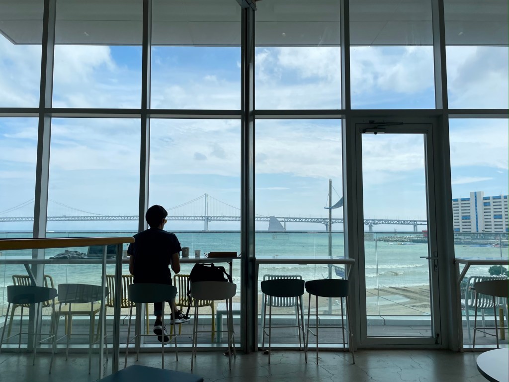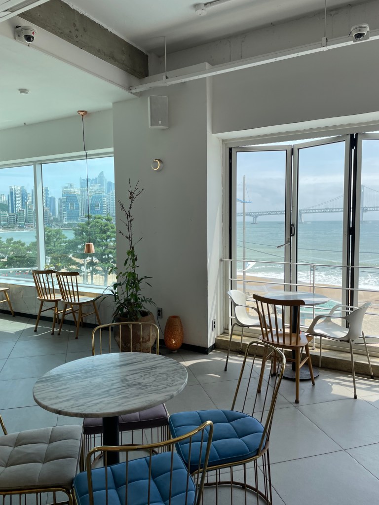 Cafe Haute เป็นอีกหนึ่งคาเฟ่วิวทะเลที่ชอบมาก อยู่ติดหาดควังอัลลี แถมยังได้วิวสะพานควังอันแบบจุกๆ ความดีคือคาเฟ่มีทั้งหมดสามชั้น ชั้นบนสุดจะเป็นดาดฟ้า อารมณ์ Skybar ไปเลย บรรยากาศเกาหลีเกาใจ วิวดีมาก ใครมาหาดควังอัลลียังไงก็ต้องแวะมานั่งจิบกาแฟที่นี่