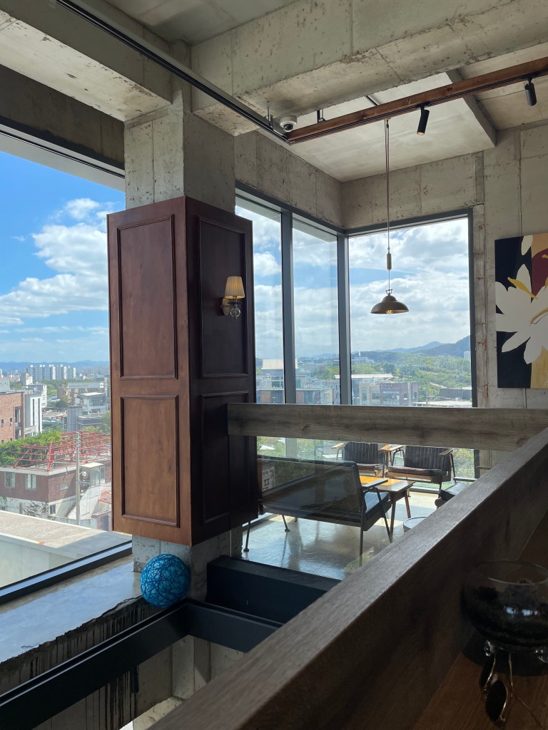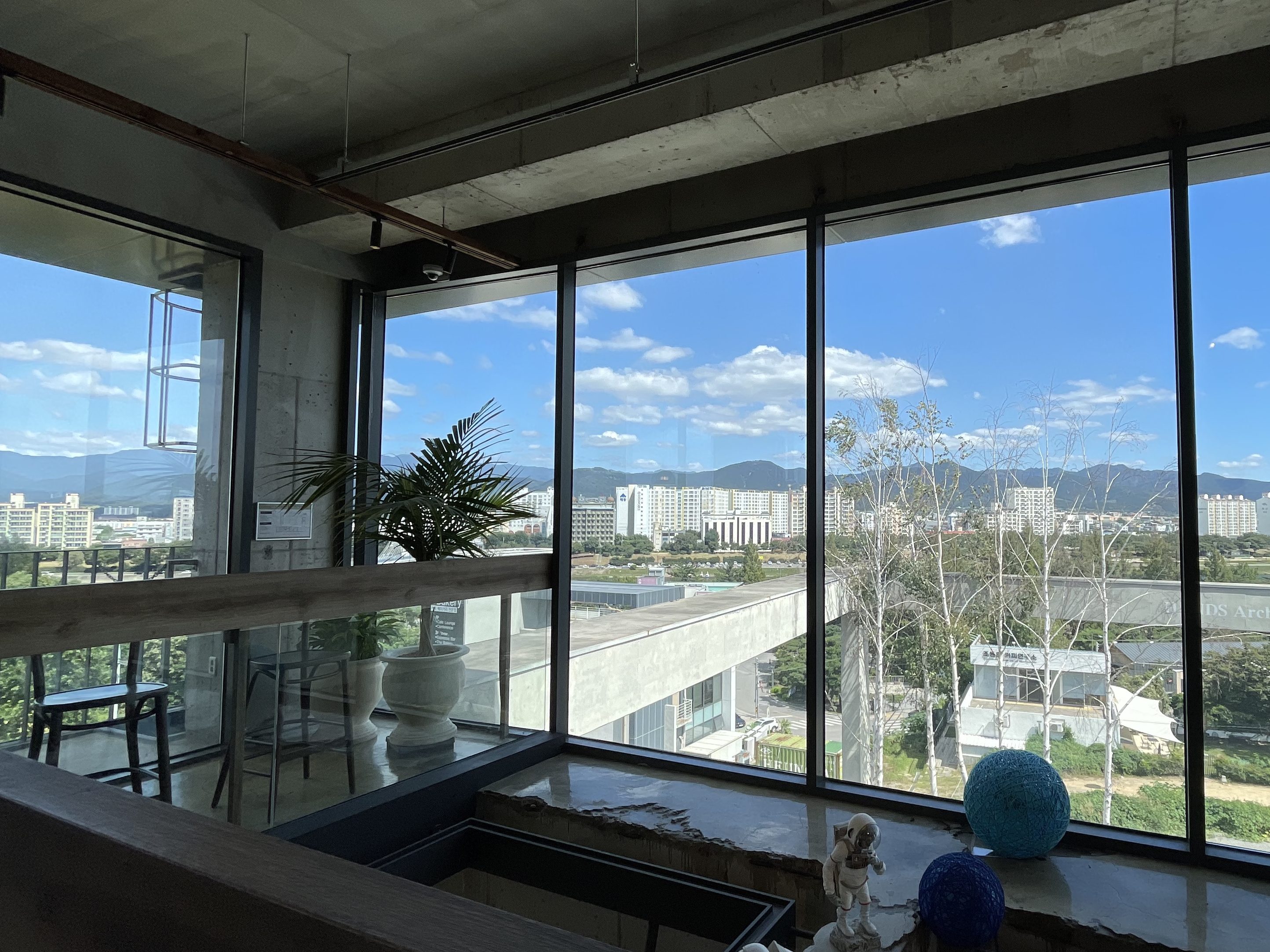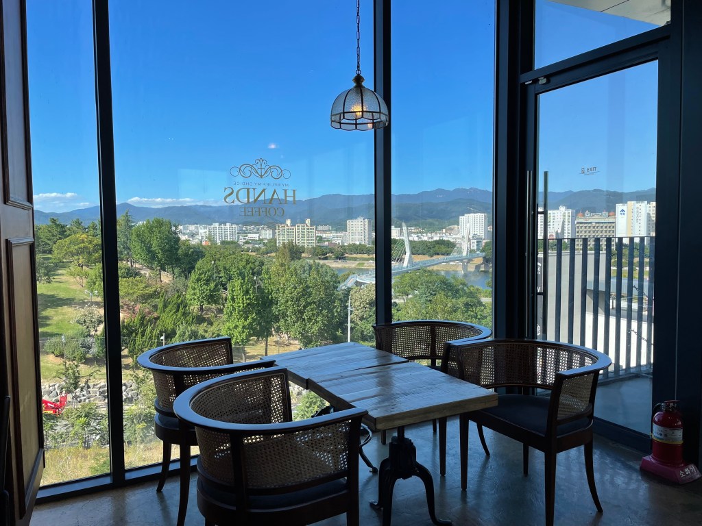 Hands Coffee อีกแล้ว แต่สาขานี้วิวปังมาก เป็นตึก 4 ชั้นใหญ่ๆ ตั้งอยู่กลางหุบเขาวิว 180 องศาไปเลย ที่นั่งก็มีเยอะมาก แบบต้องขึ้นลงลิฟท์กันเลยทีเดียว เพราะเดินไม่ไหว สาขานี้จะอยู่นอกเมืองแทกูหน่อย แต่ได้วิวภูเขา แม่น้ำ และสามารถมองเห็นสะพาน Ayang Bridge อีกด้วย ภายในคาเฟ่จะตกแต่งแนวคลาสสิคแอนทีค วอร์มๆ ฟีลดีมากเลย