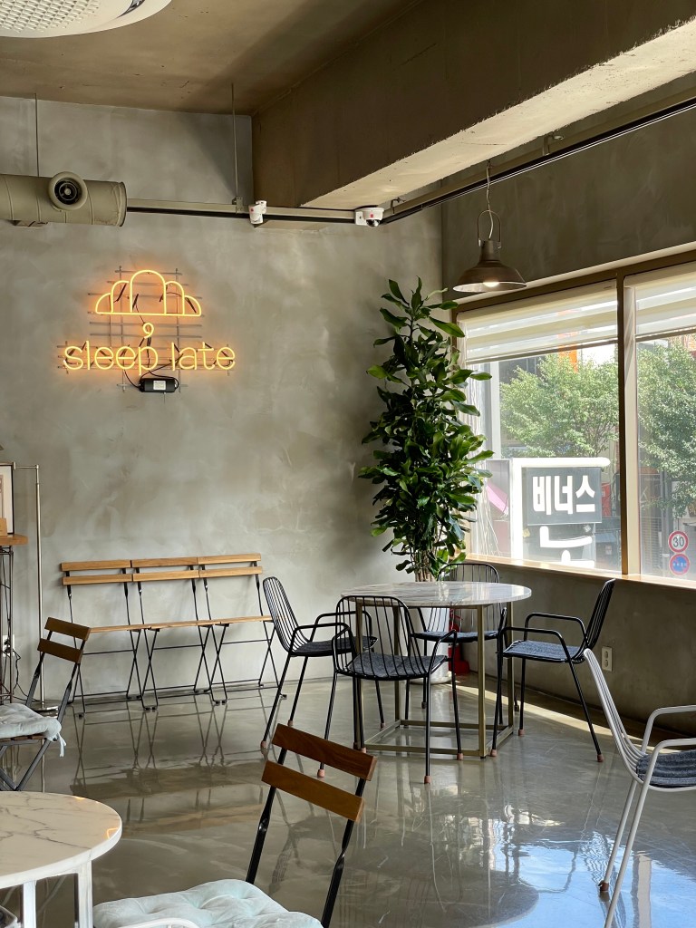Lazy Morning สาขานี้ตั้งอยู่แถวย่านสถานีรถไฟ Dongdaegu เป็น Chain Cafe นึงที่เราชอบมาก กาแฟดี หอมละมุน แถมในร้านมีครัวซองต์อบแบบสดๆ เนื้อนุ่มฟู เข้าไปในร้านคือหอมทั้งกลิ่นกาแฟ และกลิ่นครัวซองต์ ร้านนี้มีที่นั่งสองชั้น ภายในร้านจะตกแต่งออกแนวโมเดิร์นคุมโทน ใครมาพักแถวนี้ อย่าลืมแวะ ร้านอยู่ตรงหัวมุมถนนพอดี แต่หากใครไม่ได้พักแถวนี้ อาจจะต้องข้ามที่นี่ไป เพราะเดินจากรถไฟใต้ดินไกลหน่อย