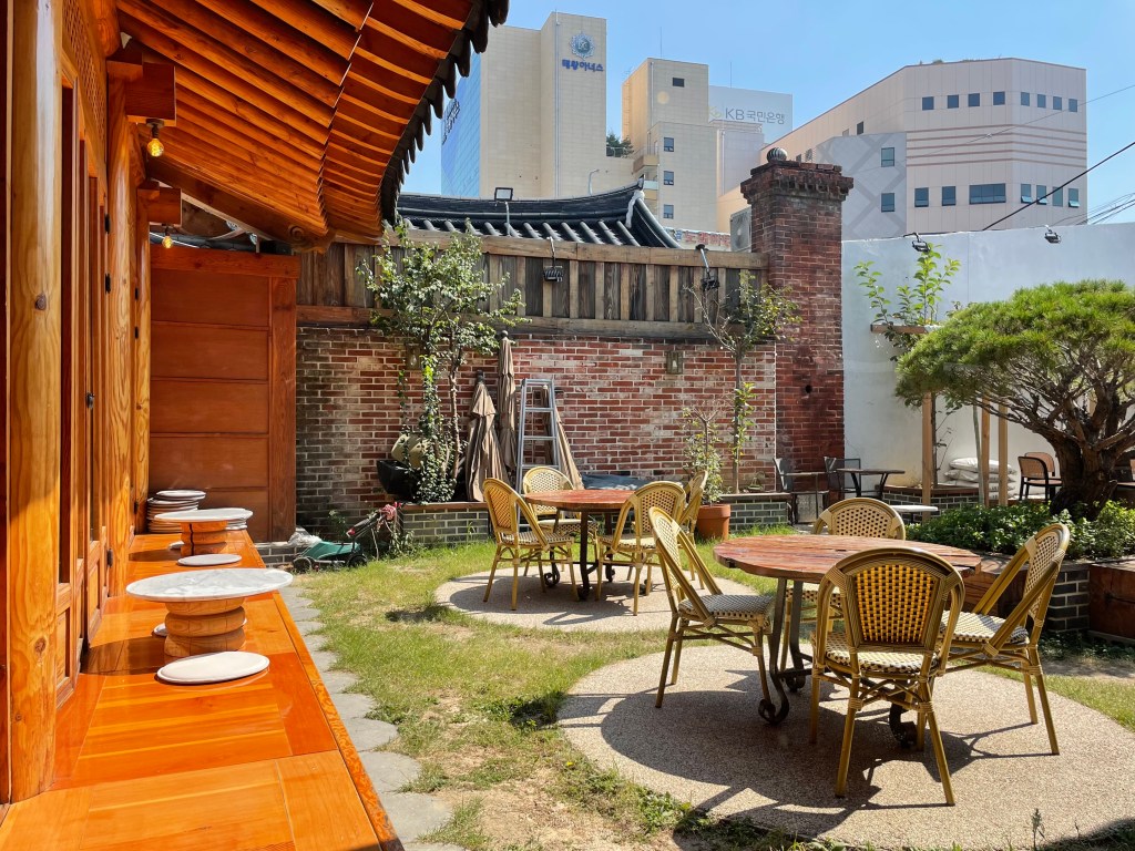 คาเฟ่ย้อนยุคสไตล์บ้านเกาหลีแบบโบราณ ตั้งอยู่ในแถวย่านถนนชอปปิ้งดงซองโน (Dongseongno) มีวิวสวนเล็กๆ อยู่ตรงกลาง บรรยากาศเหมือนอยู่บ้านเลย ฟีลดีมาก คาเฟ่ไม่ได้ใหญ่มาก มีที่นั่ง 2 ชั้น มีโซนด้านนอก อารมณ์นั่งที่ระเบียงบ้าน และโซนสวน หากมาช่วงที่อากาศเย็นเจอฟ้าใสๆ กับแสงแดดในปลายเดือนกันยายนเป็นต้นไป เป็นอะไรที่ฟินมากที่สุด คาเฟ่ที่นี่มีมุมถ่ายรูปเพียบเลย