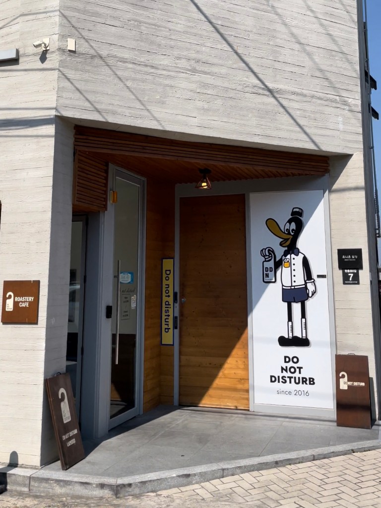 คาเฟ่ Do Not Disturb อยู่ไม่ไกลจากภูเขาอัปซานซึ่งต้องนั่งรถไฟออกนอกเมืองไปหน่อย คาเฟ่สไตล์โมเดิร์นเป็นตึก 3 ชั้น ใครที่จะมาเที่ยวภูเขาอัปซาน แวะมาจิบกาแฟได้ที่นี่ จากสถานีรถไฟใต้ดิน Hyeonchungno อาจจะต้องเดินออกกำลังกายนิดหน่อย เพราะเดินขึ้นเนิน ย่านนี้ค่อนข้างเงียบสงบ คนไม่ค่อยเยอะ