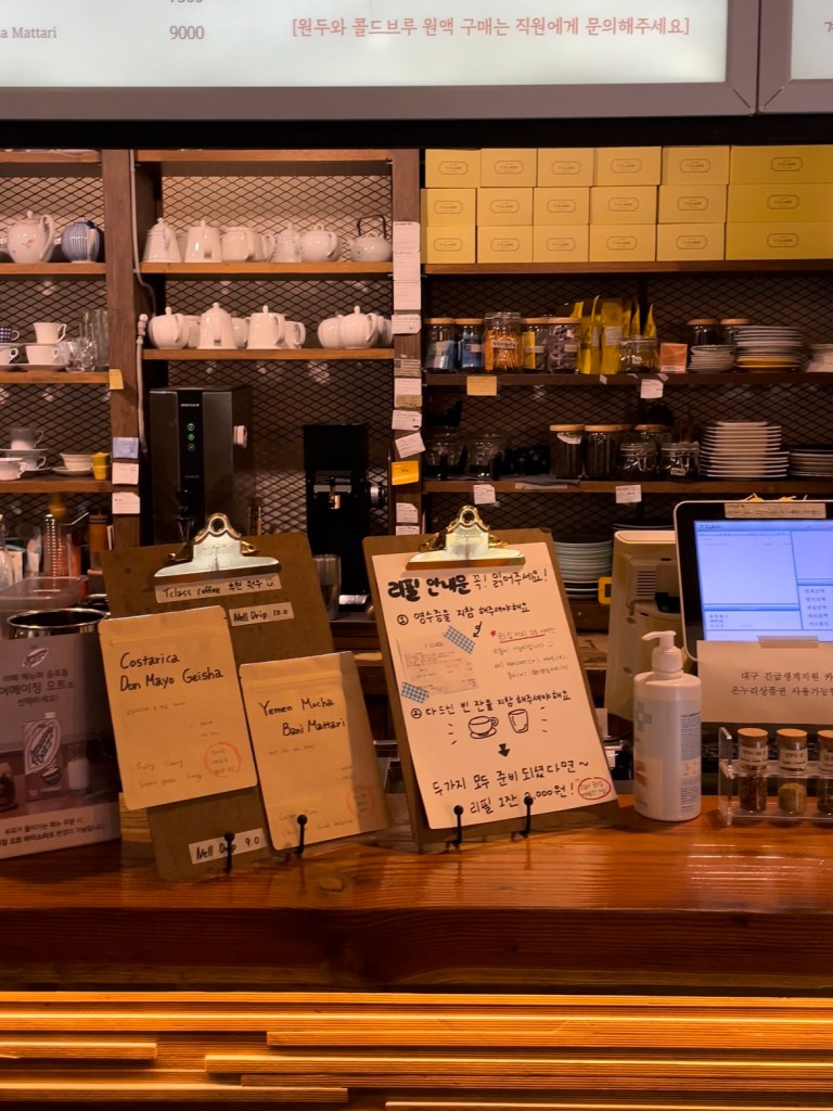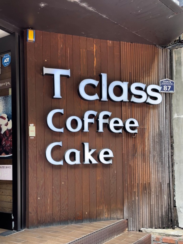 T Class Coffee เป็นคาเฟ่ Specialty ที่ตั้งอยู่ในย่านถนนชอปปิ้งดงซองโน (Dongseongno) เลย ใครไปเดินเล่นแถวนั้น แวะนั่งจิบกาแฟชิลๆ ที่นั่งจะมีสองชั้น คือชั้นสองและสาม (ชั้นแรกเป็นทางขี้น) ส่วนตัวเราชอบนั่งชั้น 3 เห็นวิวสวนเล็กๆ และเห็นชิงช้าสวรรค์ Dongseong-ro Spark ด้วย บรรยากาศภายในจะเป็นไม้ คลาสสิคแบบ Cozy สบายๆ