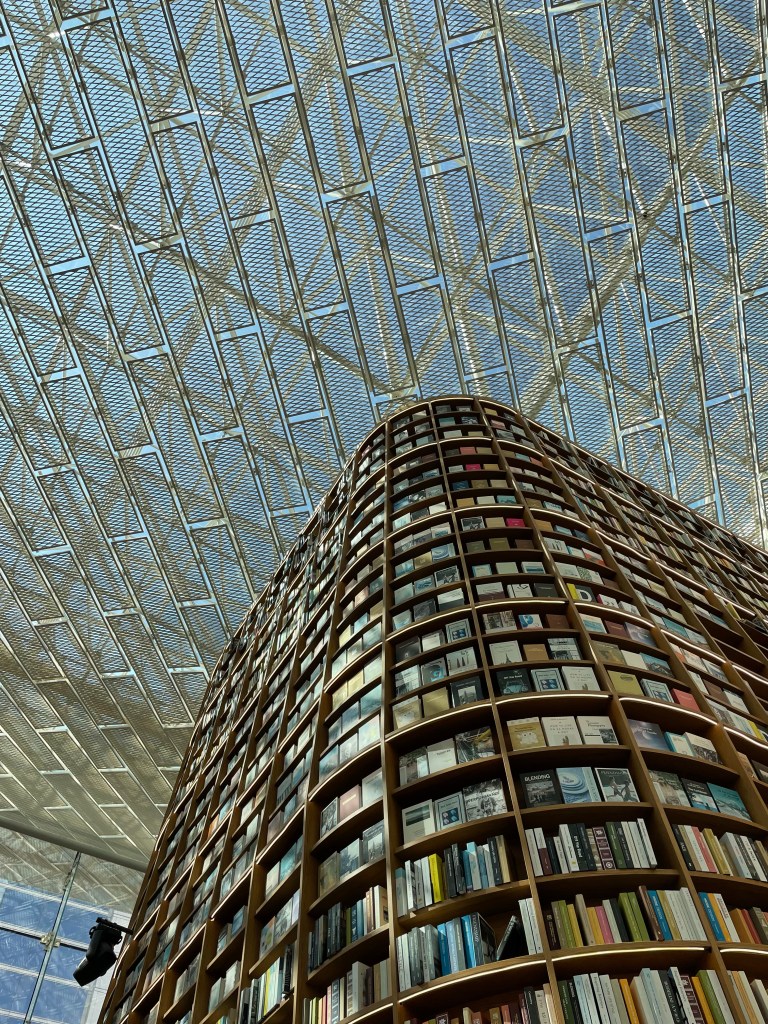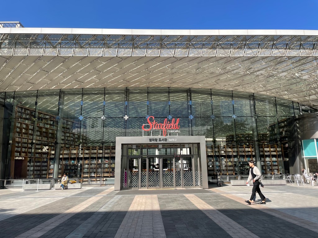 หอสมุดสุดชิคในย่านกังนัมและอยู่กลางห้าง Coex ใครมาเที่ยวกรุงโซลต้องแวะถ่ายรูปแน่นอน Starfield Library เป็นหอสมุดที่มีชั้นวางหนังสือจากพื้นชั้นหนึ่งสูงไปถึงหลังคาของชั้นสองกันแบบ floor-to-ceiling กันเลยทีเดียว แค่นึกก็รู้สึกว่าไม่เคยเห็นที่ไหนมาก่อน ใครที่ชอบถ่ายรูป Check-in แบบคูลๆ มีชั้นวางหนังสือสุดอลังเป็น Background ต้องมาที่นี่เลย