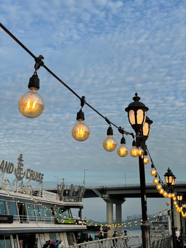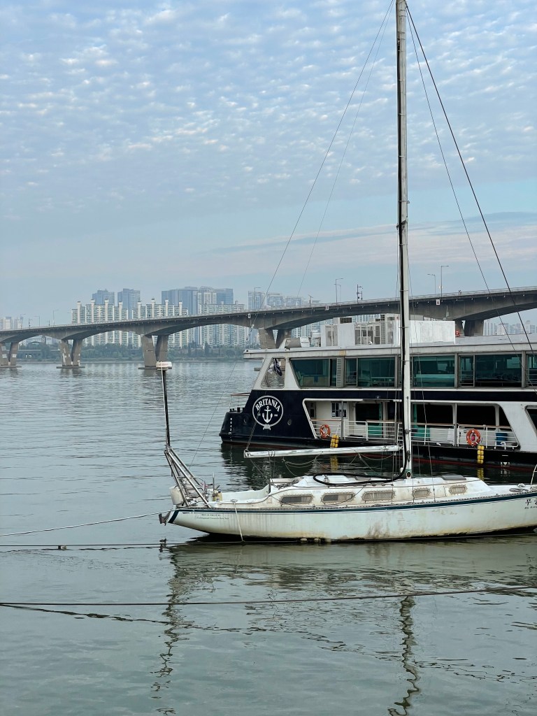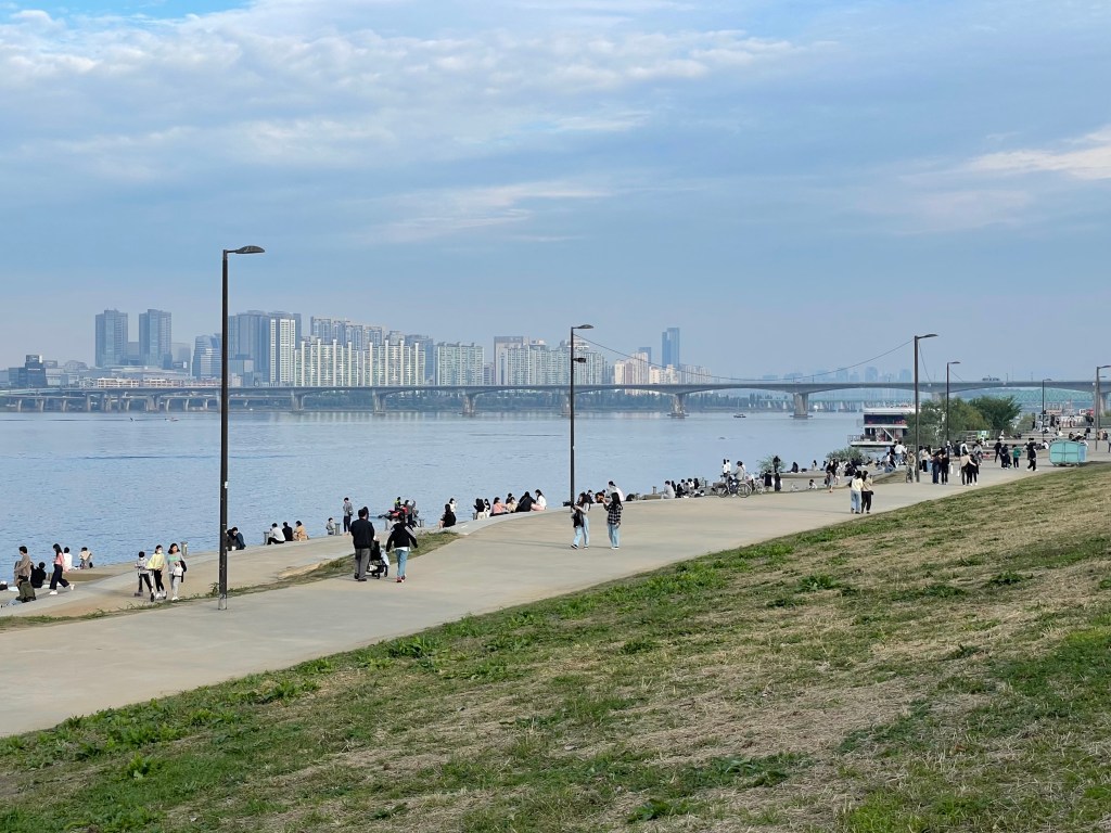 สวนสาธารณะยออึยโด (Yeouido) เป็นสวนสาธารณะที่ตั้งอยู่ริมแม่น้ำฮัน มาเดินเล่นช่วงเย็นบรรยากาศดีมาก ที่นี่คนเยอะโดยเฉพาะช่วงวันหยุดเสาร์อาทิตย์ คนเกาหลีจะชอบมานั่งปิกนิกชิลๆ พกไวน์มานั่งจิบ ชมวิวแม่น้ำ หรือไม่ก็หอบเต็นท์มากางนอนค้างคืนกันเลยทีเดียว