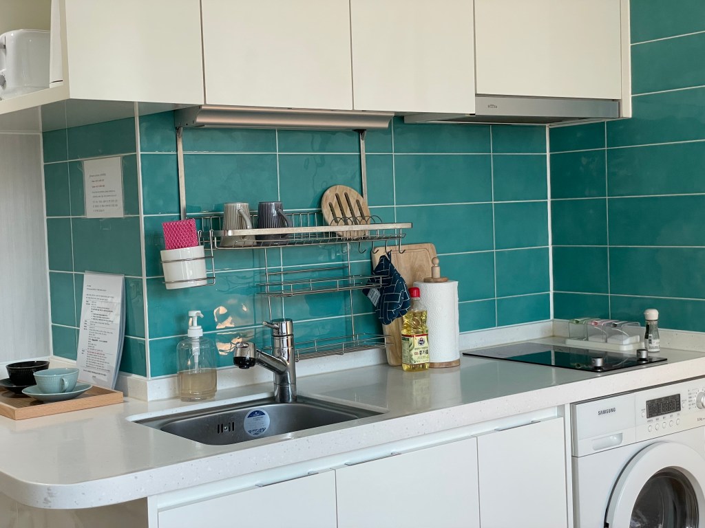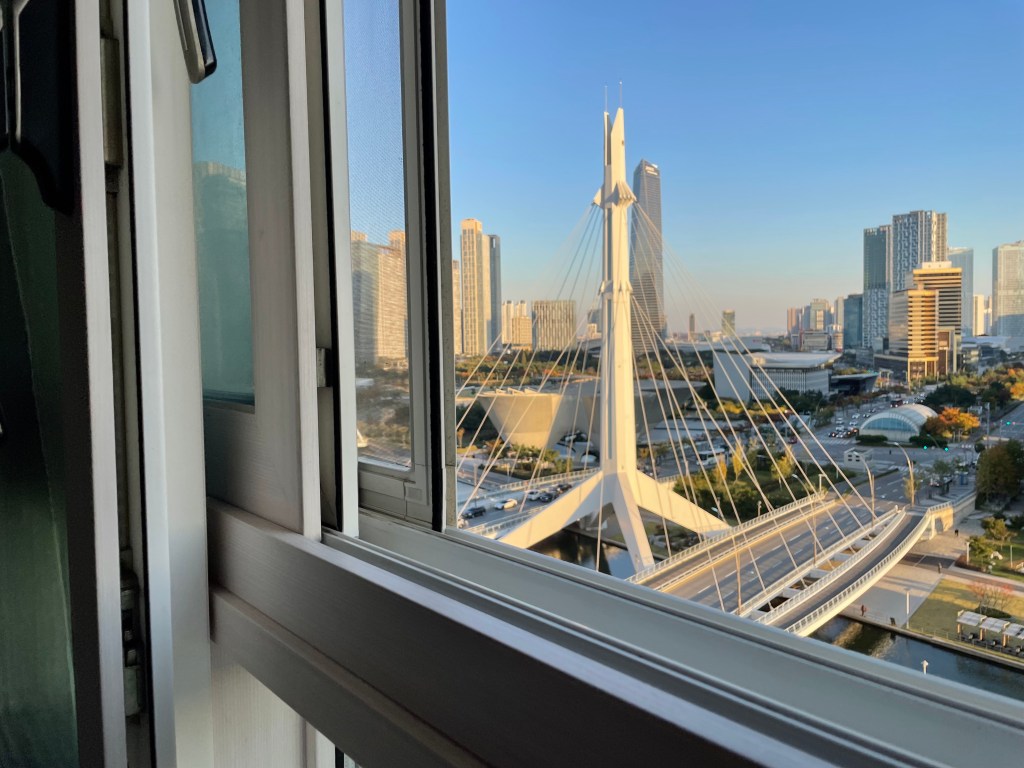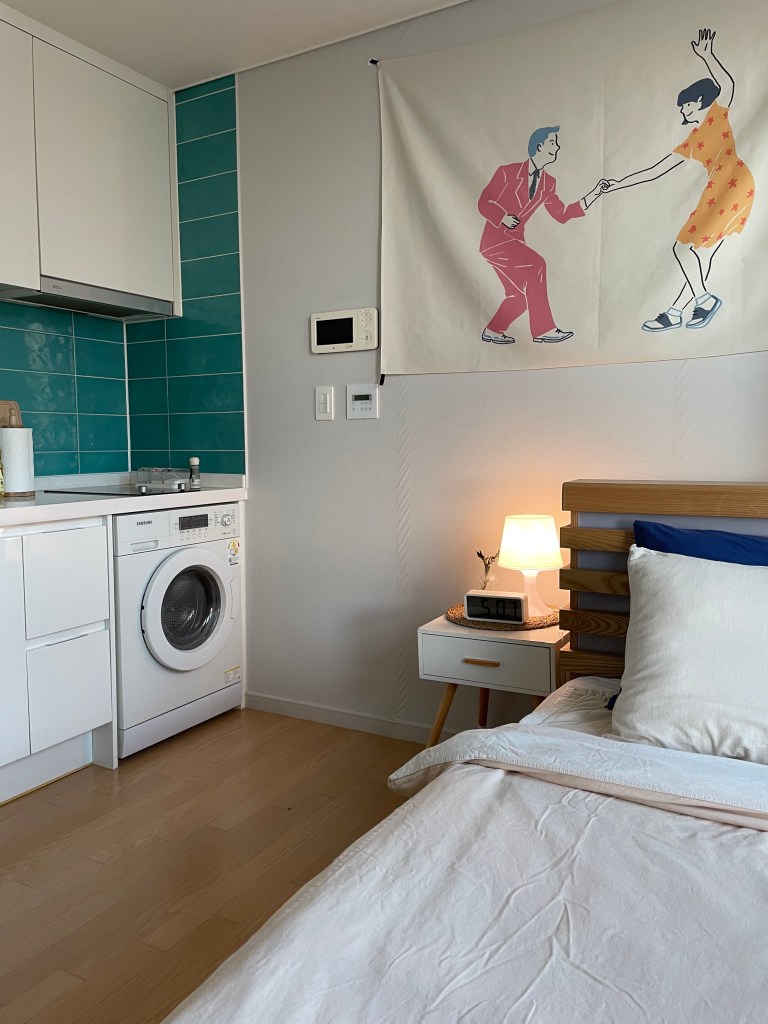 ที่พักของเราเป็น Airbnb ขนาดไม่ได้ใหญ่มาก แต่มีครบทุกอย่าง ทั้งมุมครัวเล็กๆ และเครื่องซักผ้า สิ่งหนึ่งที่ชอบมากที่สุดใน Aribnb นี้ก็คือเป็นคอนโดที่ตั้งอยู่ใกล้สถานี Central Park มากๆ เดิน 10 นาทีก็ถือ แถมเห็นวิว Songdo Central Park แบบเต็มๆ ในราคาแค่คืนละ 1,000 บาทนิดๆ