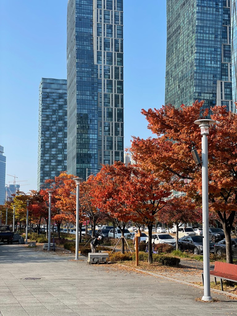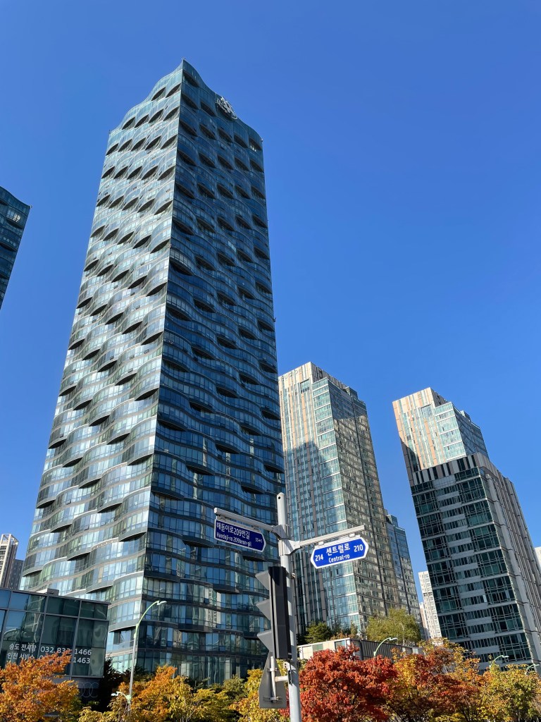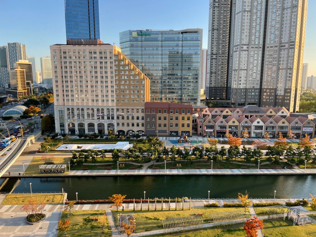 Songdo Central Park เป็นแลนด์มาร์คสำคัญของเมืองอินชอน เราเลยเลือกมาพักที่นี่เลย นั่งรถไฟใต้ดินจากโซลมาลงที่สถานี Bupyeong แล้วเปลี่ยนสายเป็น Incheon Line 1 มาลงที่สถานี Central Park ซึ่งใช้เวลาเดินทางเกือบๆ สองชั่วโมงเลยทีเดียว