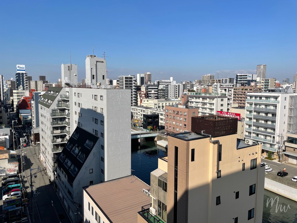 ใครจะตามมาพักแนะนำให้จองห้องมุม ซึ่งจะเป็นห้องใหญ่ ก็จะได้วิวย่านนัมบะและแม่น้ำโดทงโบริแบบพานอรามา เป็นฟีลที่ตื่นมาเจอตอนเช้าแล้วสดชื่นที่สุด ด้านขวามือที่เราเห็นก็คือถนนคนเดิน Dotonbori และย่านชินไซบาชินั่นเอง