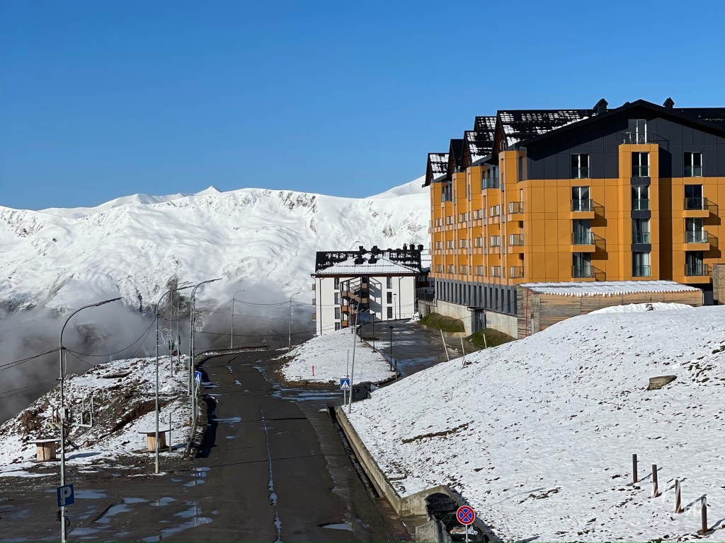 ที่พักที่เราเลือกมีชื่อว่า New Gudauri Loft 1 Apartment เป็นที่พักที่อยู่บน Airbnb เรามาพักที่นี่ในช่วงใกล้หมดฤดูการเล่นสกีหรือ Low Season ซึ่งข้อดีก็คือราคาถูกและเป็นทางเลือกสำหรับคนที่ไม่ได้เน้นมาเล่นสกี แต่มาพักผ่อนเอาบรรยากาศ แถมช่วงนี้มีห้องว่างให้เลือกมากมาย คนน้อย เงียบสงบ และตั้งอยู่ท่ามกลางเทือกเขาคอเคซัสแบบนี้ บอกได้คำเดียวว่าเหมาะกับการพักผ่อนแบบ Slow Life เป็นที่สุด