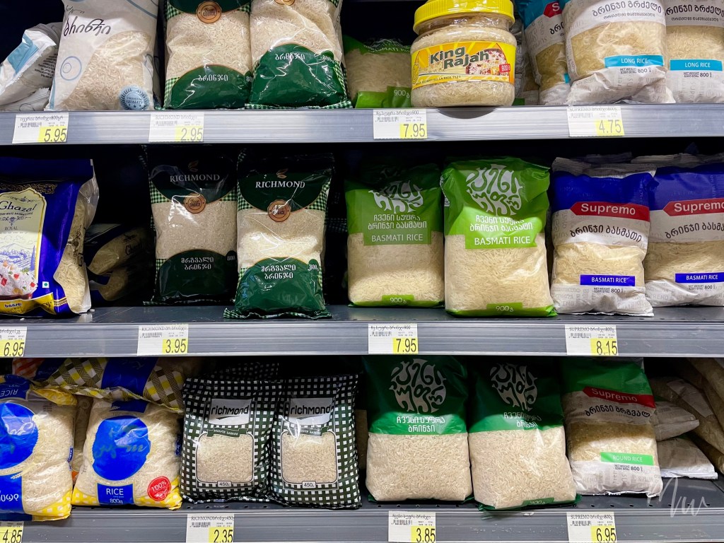 อีกหนึ่งอย่างที่หากอยากเที่ยวแบบประหยัดและขี้เกียจทำอาหารเองก็จะมีพวกอาหารสำเร็จที่ทำไว้แล้วตามซูเปอร์มาร์เก็ต ซึ่งราคาไม่แพงมาก เช่น ไก่ย่างตัวละ 13 ลารีหรือ 169 บาท ไส้กรอกอบ บาร์บีคิวเสียบไม้ หรือพวก Cutlet ที่คล้ายๆ หมูก้อนทอด ชิ้นละราวๆ 4 ลารี ไปจนถึง Kachapuri ที่ราคาเริ่มต้นแค่ 5 ลารี ที่สำคัญอาหารจำพวกแฮมและชีสที่นี่คือถูกมาก ใครชอบต้องถูกใจแน่นอน