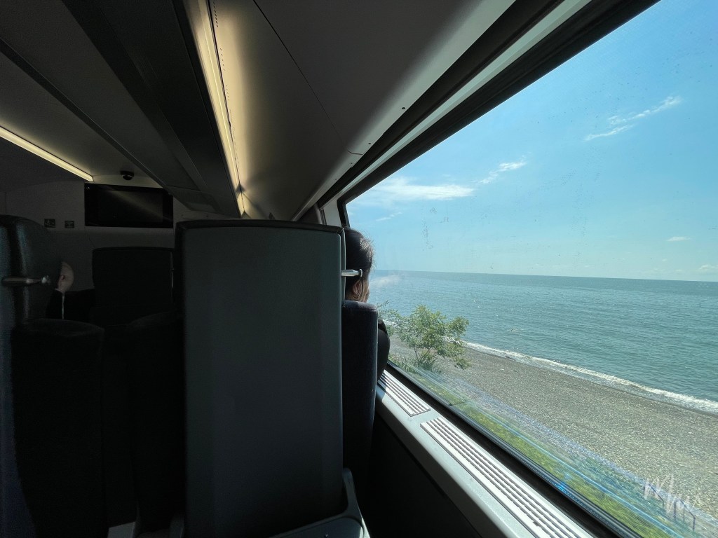 วิวที่ได้ระหว่างทางในช่วงที่รถไฟกำลังวิ่งเลียบชายฝั่งเพื่อเข้าสู่เมืองบาทูมี ได้วิวทะเลแบบฟินๆ ไปอีก