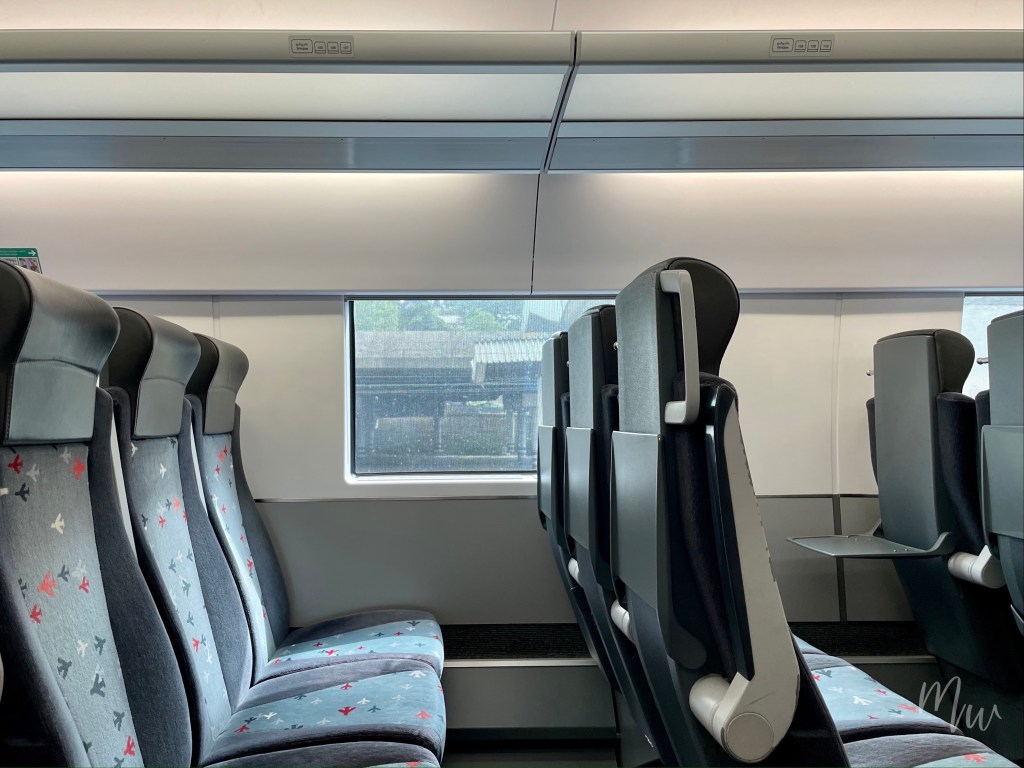 การเดินทางในทริปนี้เราจะเดินทางด้วยรถไฟรอบ 10:25 โดยเลือกเป็นตั๋ว Second Class เพราะราคาถูกกว่าชั้นหนึ่งตั้งครึ่งนึง แถมที่นั่งไม่ได้ต่างกันมาก ชั้นหนึ่งจะเป็นที่นั่งเบาะหนัง มีที่ชาร์จ และมี Leg Room กว้างกว่าเล็กน้อย ส่วนชั้นสองเป็นเบาะผ้าและมีที่ชาร์จเหมือนกัน
