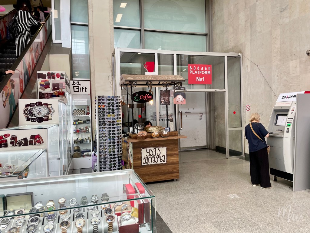 สถานี Station Square เป็นสถานีรถไฟกลางของเมืองทบิลิซี ภายในอาคารจะเหมือนห้างเก่าๆ หน่อย ชั้น 3 จะเป็นจุดจำหน่ายตั๋วและเป็น Platform 2 ส่วนรถไฟของเราไปบาทูมีรอบ 10:25 ขบวน 808 จะต้องขึ้นที่ Platform 1 ซึ่งจะอยู่ชั้น 2