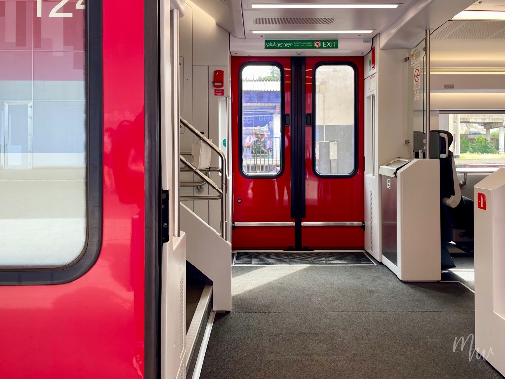 ตอนขึ้นรถไฟจะมีเจ้าหน้าที่คอยตรวจตั๋ว เราสามารถแสดง e-ticket ที่ซื้อออนไลน์จากหน้าจอมือถือให้เจ้าหน้าที่ดูพร้อมกับเล่มพาสปอร์ตได้เลย