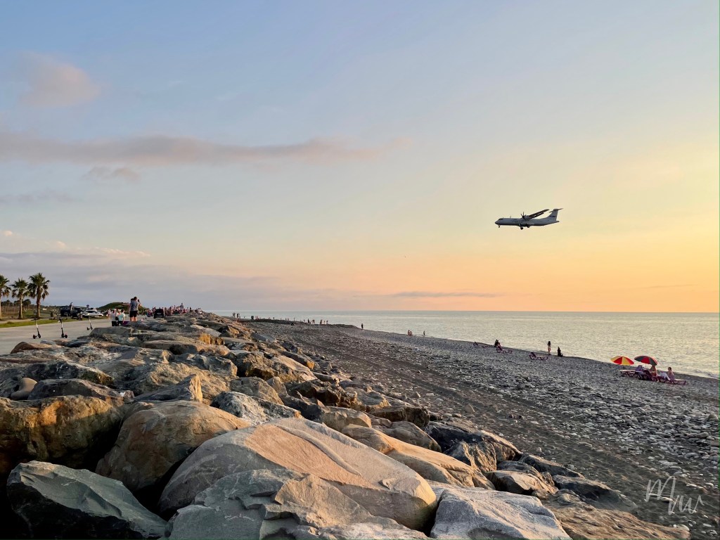ช่วงเย็นของทุกวันก็จะมีคนไปรอถ่ายรูปเครื่องบินกันเยอะมาก บรรยากาศดี นอกจากวิวเครื่องบินแล้วก็ยังได้วิวพระอาทิตย์ตกที่ทะเลอีกด้วย
