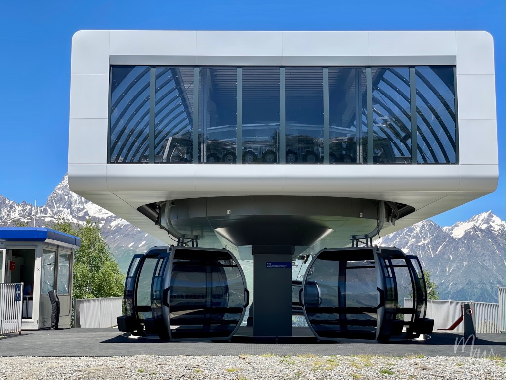 รอบนี้เปลี่ยนจาก Chairlift มาเป็น Cabin แบบปิดเหมือนๆ กับที่นั่งกันในเมือง Tbilisi หรือ Batumi กระเช้ากว้างขวางและสามารถจุได้ถึง 8 คน ข้อดีคือคนน้อยมากในช่วงต้นเดือนกรกฎาคมและเป็นวันธรรมดา ทำให้เราได้ทั้ง Chairlift และ Cabin แบบส่วนตัวกันไปเลย