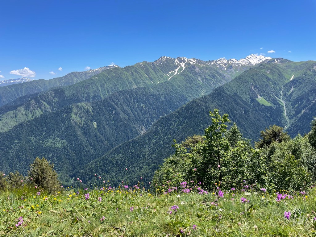 นอกจากคาเฟ่แล้ว ด้านบนก็ยังมีเส้นทางสำหรับเดินชมธรรมชาติที่เดินต่อมาจากสถานี Zuruldi ประมาณ 5 นาที ก็จะเจอวิวที่ล้อมรอบไปด้วยเทือกเขาคอเคซัส และยังสามารถมองเห็น Matterhorn of the Caucasus หรือยอดเขา Ushba อีกด้วย บอกเลยว่าถ้าได้ขึ้นมาแล้ว แนะนำให้ไปเดินทอดน่องชมวิวคอเคซัสให้จุใจกันไปเลย บรรยากาศดีมาก