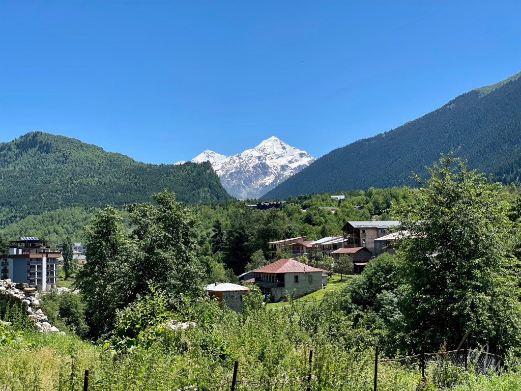 ระหว่างทางก็จะเห็นวิวหมู่บ้านเมสเทียทั้งหมด ไปจนถึงเทือกเขาคอเคซัสแบบรอบด้าน และสามารถเห็นภูเขา Ushba กับความสูงถึง 4,710 เมตรจากระดับน้ำทะเลอีกด้วย