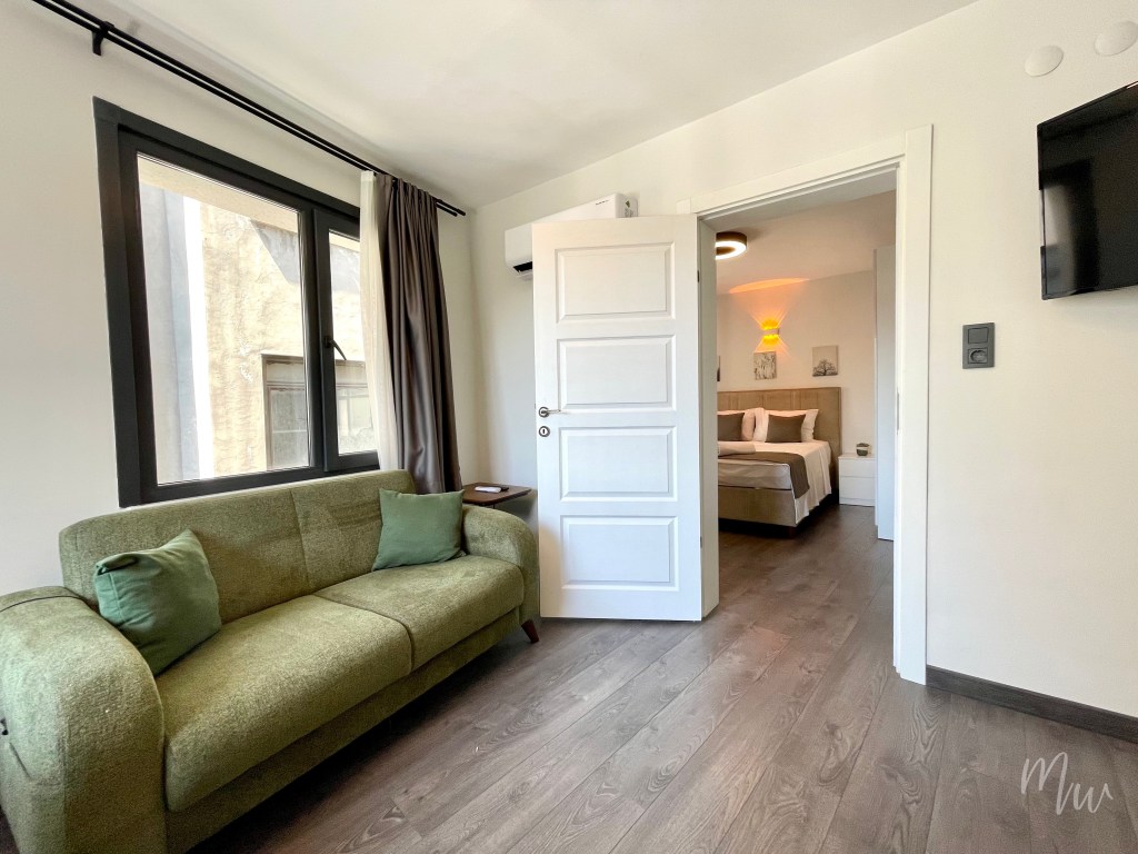 ภายในห้องสว่าง มีหน้าต่างรอบด้าน จากห้องนั่งเล่นจะสามารถมองเห็นวิวสะพาน Haliç Köprüsü หรือ Golden Horn Bridge ที่มีเมโทรวิ่งเพื่อข้ามไปยังฝั่ง Old Town นอกจากวิวสะพานแล้วยังสามารถมองเห็น Yeni Cami Mosque ที่สวยงามมากอีกด้วย