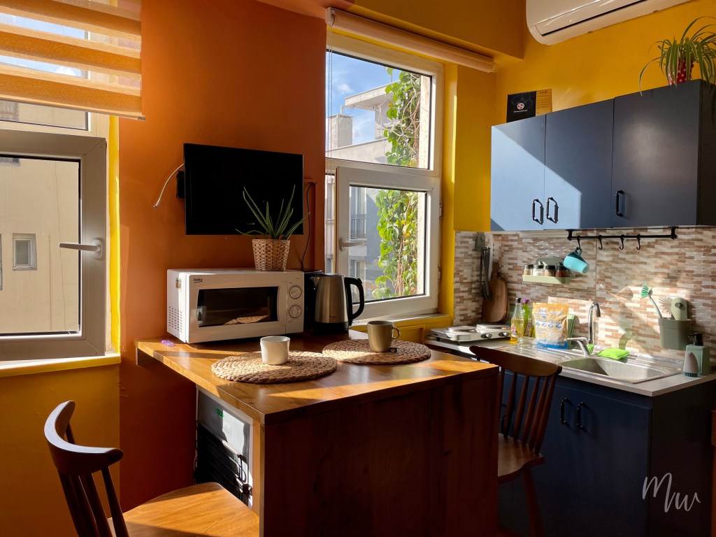 อพาร์ทเมนท์แบบ 1 ห้องนอน ห้องใหม่ กว้างขวาง และมีห้องนั่งเล่นพร้อมโซนครัวเล็กๆ แยก ตัวห้องจะตั้งอยู่บนชั้น 2 ของตึกที่มีทั้งหมด 4 ชั้น และแน่นอนว่าไม่มีลิฟท์ (ตึกในอิสตันบูลส่วนใหญ่จะไม่มีลิฟท์และเป็นบันไดวนที่แคบสุดๆ)