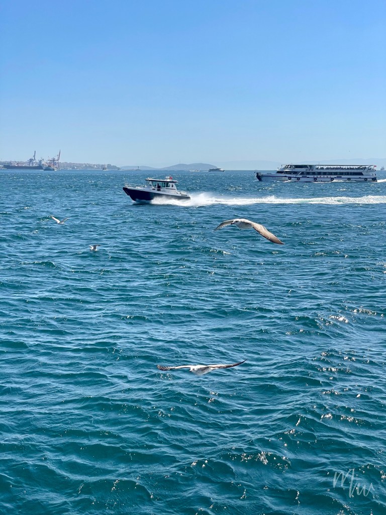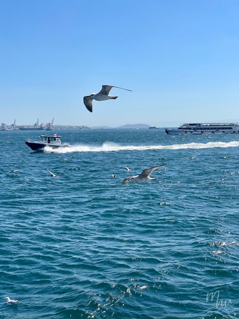 การล่องเรือชมช่องแคบบอสฟอรัสก็จะทำให้เราได้เห็นวิวเมืองอิสตันบูลทั้งฝั่งยุโรปและฝั่งเอเชีย โดยการล่องเรือนี้จะใช้เวลา 2 ชั่วโมงครึ่ง เรือล่องไปแบบช้าๆ พร้อมกับมีไกด์แนะนำสถานที่สำคัญที่เรือล่องผ่าน มีฝูงนกนางนวลบินตาม และถ้าใครที่โชคดีมากๆ ก็จะได้เจอกับโลมาที่อยู่ในบริเวณช่องแคบที่บรรจบกับทะเลมาร์มาราอีกด้วย