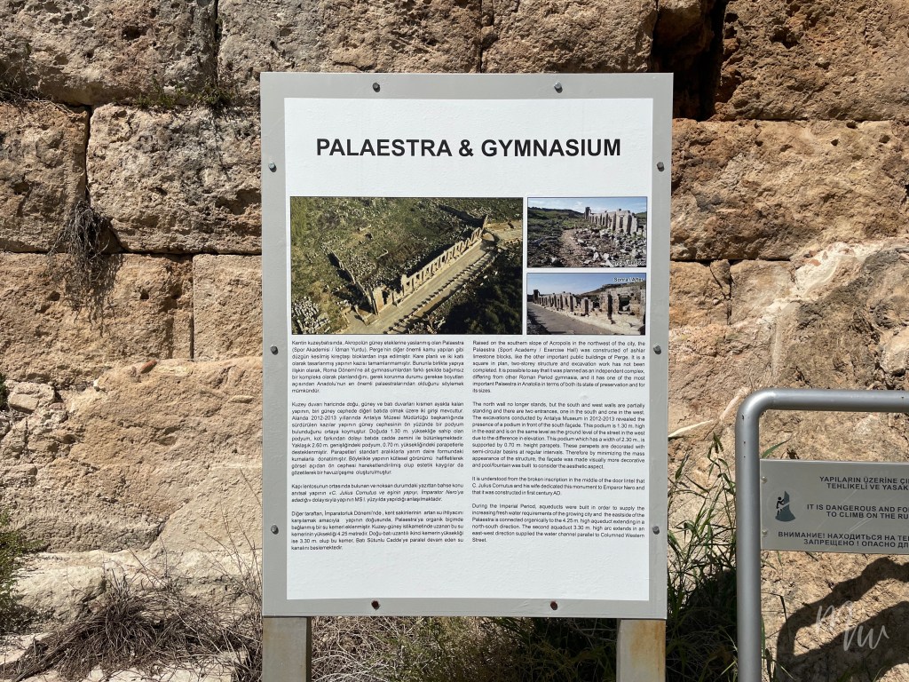 ทางด้านขวามือเราจะเจอกับ Palaestra และ Gymnasium หรือโรงมวยปล้ำและโรงฝึก (ฟิตเนส) นั่นเอง ไม่น่าเชื่อว่าคนกรีกโรมันโบราณก็จะมีฟิตเนสที่ใช้ในการฝึกซ้อมคนที่จะเข้าแข่งขันในเกมสาธารณะต่างๆ เหมือนกับโลกปัจจุบัน แถมยังเป็นสถานที่สำหรับสังสรรค์และแลกเปลี่ยนทางความคิดอีกด้วย
