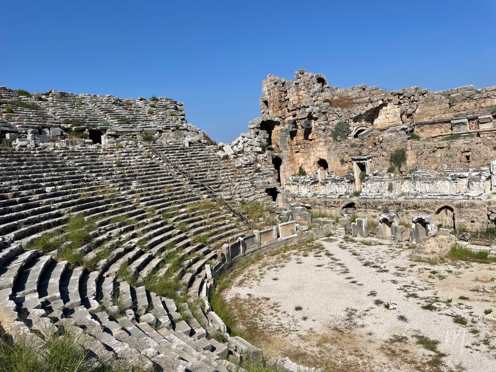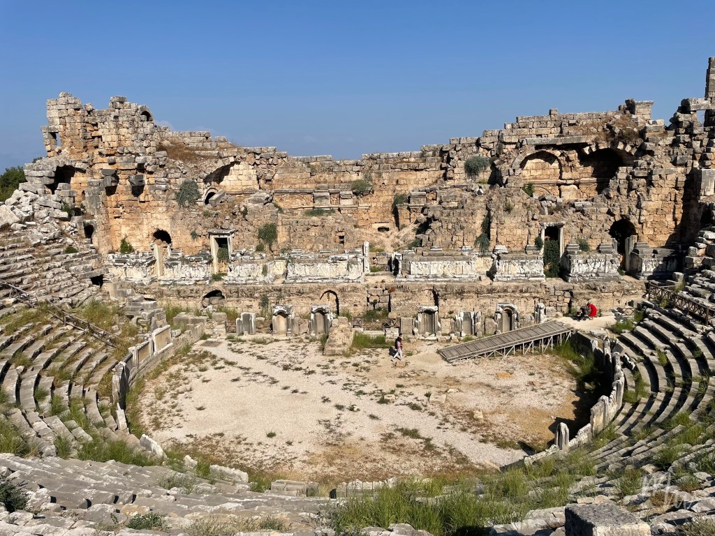 หากพูดถึง “โรงละคร” ก็อาจจะนึกถึงบรรยากาศแบบที่นั่งเป็นชั้นๆ แบบครึ่งวงกลมที่มีเวทีอยู่ตรงกลาง ขนาดไม่ได้ใหญ่ไปกว่าโรงหนัง แต่ Theatre ของชาวกรีกโรมันในเมือง Perge เป็นโรงละครหรือสามารถเรียกว่าหอประชุมแบบ Open Air ขนาดใหญ่ที่สามารถจุคนได้มากกว่า 12,000 ที่นั่ง ถือว่าเป็นสถานที่สาธารณะที่ใหญ่มากๆ เลยทีเดียว