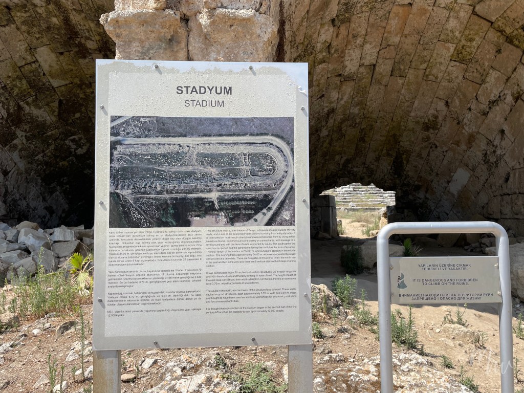 พอเห็นแผนที่แล้ว บอกเลยว่าอาณาจักรโบราณ Perge Ancient City แห่งนี้ไม่เล็ก และเปรียบเสมือนเมืองๆ นึงในสมัยปัจจุบันกันเลย ไม่ว่าจะเป็นประตูเมือง โรงอาบน้ำ จัตุรัส ร้านค้า ถนนสองเลนขนาดใหญ่ ทางข้ามถนน สเตเดียม โรงละคร และศูนย์ออกกำลังกายของชาวกรีกโรมัน แนะนำให้เผื่อเวลาอย่างน้อยครึ่งวัน หรือสำหรับใครที่อยากเดินให้ครบก็อาจก็อาจจะต้องใช้เวลาหนึ่งวันเต็มๆ รวมกับการเดินทางไปกลับเมืองอันทาเลียด้วย
