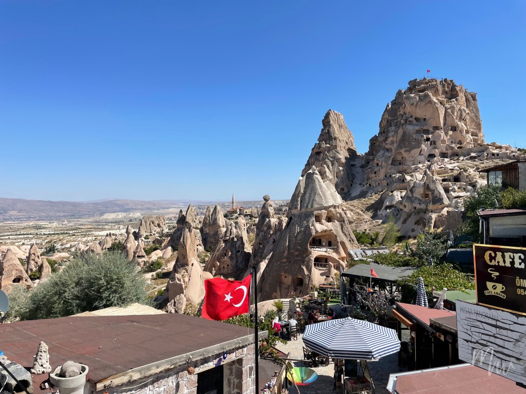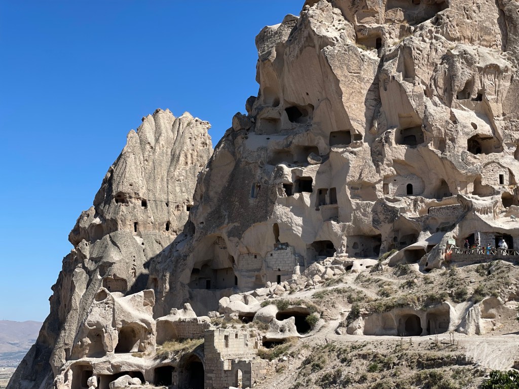 ทำไม Uchisar Castle ถึงเป็นหนึ่งในสถานที่ท่องเที่ยวที่ Must-Visit สำหรับคนที่มาเที่ยว Cappadocia? ปราสาทแห่งนี้มีอายุเก่าแก่มาตั้งแต่สมัยของจักรววรดิไบแซนไทน์หรือช่วงราวศตวรรษที่ 4 โดยตัวปราสาทเองเป็นหินภูเขาไฟที่เกิดขึ้นเองตามธรรมชาติ มีลักษณะเป็นทรงกรวยคว่ำลง สูง 60 เมตรและกว้างถึง 9,000 ตารางเมตร จากด้านบนของตัวปราสาทสามารถมองเห็นวิวบริเวณรอบๆ ได้แบบ 360 องศา