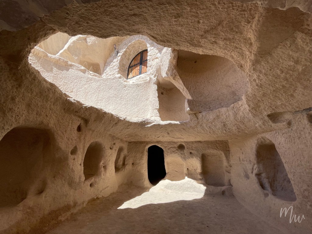หลายๆ คนอาจจะสงสัยเหมือนกับเราว่ารูสี่เหลี่ยมที่เป็นบล็อกๆ ตามผนังของปราสาทนั้นเอาไว้ทำอะไร ตอนแรกเดาว่าเป็นชั้นวางของ แต่ดูแล้วก็ไม่น่าใช่ เพราะบางทีพวกช่องสี่เหลี่ยมเหล่านี้ดันอยู่ด้านนอกของปราสาท และไม่น่าจะสามารถเอื้อมไปเอาของได้ และเราก็มักจะเห็นช่องเล็กๆ นี้แทบทุกที่ที่มีแท่งหินใน Cappadocia ซึ่งจริงๆ แล้วเป็นรูที่คนไปเจาะไว้เพื่อให้นกพิราบมาทำรังและนำมูลของนกมาใช้เป็นปุ๋ยนั่นเอง