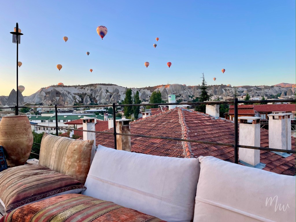แน่นอนว่าใครที่มาเที่ยว Göreme ก็จะต้องอยากได้โรงแรมที่มีดาดฟ้าสวยๆ ให้ถ่ายรูป Check-in กับวิวบอลลูน ซึ่งก็ไม่แปลกเพราะเป็น Iconic ของเมืองนี้ บวกกับวิวของหินธรรมชาติที่เกิดจากภูเขาไฟในอดีต หน้าตาแปลกประหลาด แต่สวยงามรามกับเมืองในเทพนิยาย